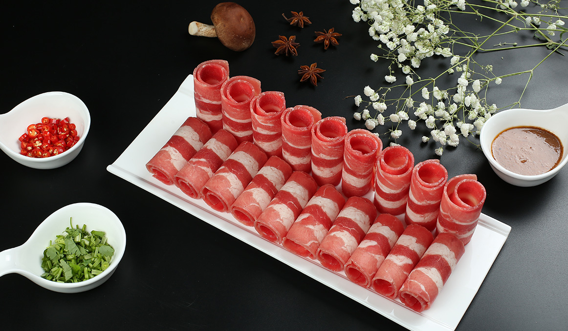 精選羔羊腿肉和肩甲軟骨部為原料。肌肉與軟骨按標(biāo)準(zhǔn)合理搭配,涮制后既有肉質(zhì)鮮美醇香的感覺(jué)又有脆骨清脆的咬感,是涮食佳品。