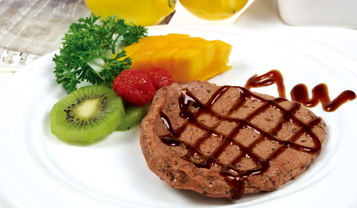 肉質(zhì)鮮美,明顯的大理石花紋,是具有脂肪含量極的少的高蛋白質(zhì)牛肉