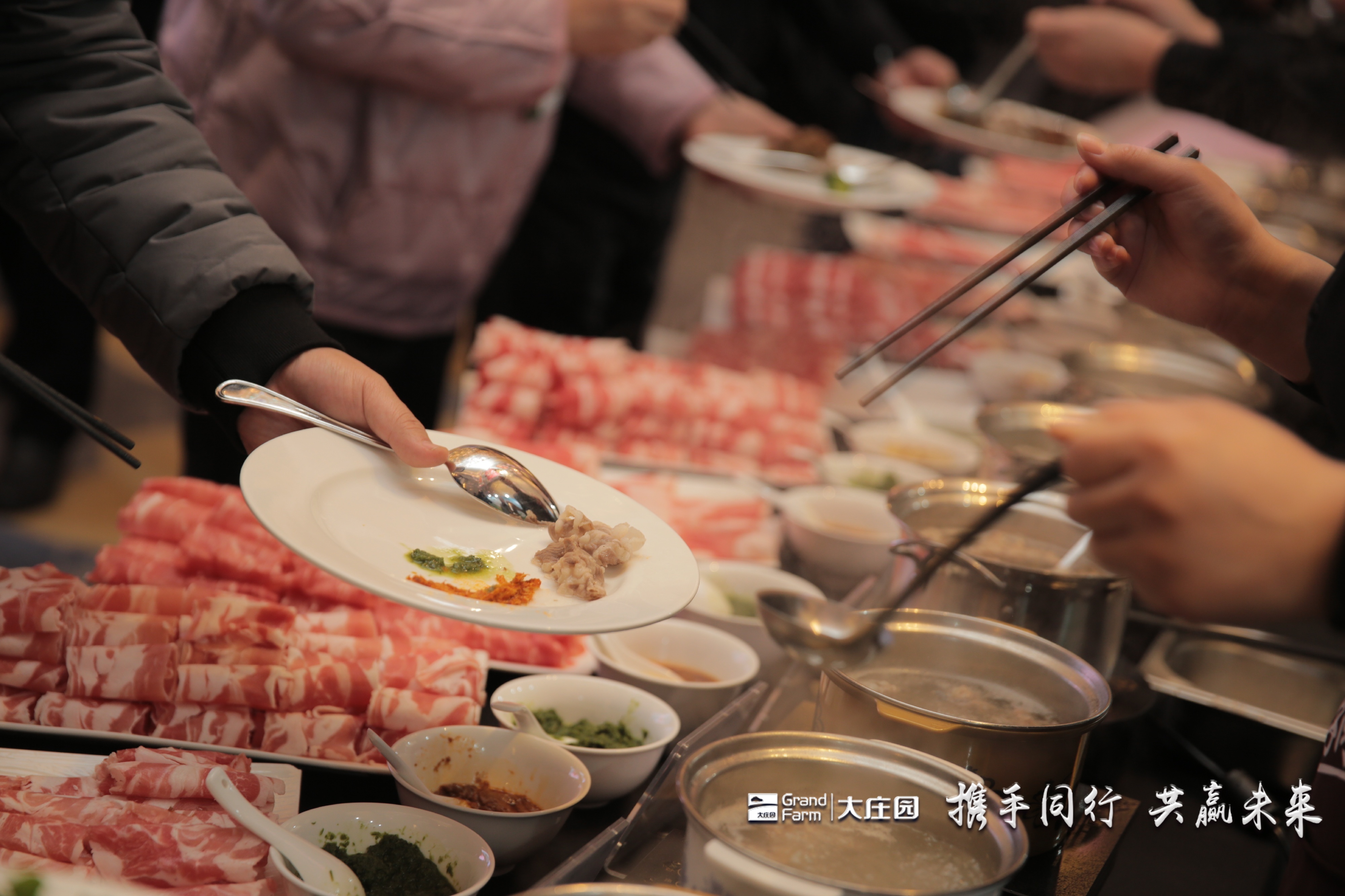 來自內蒙古錫林郭勒的草原稀珍——烏珠穆沁羊,新西蘭南阿爾卑斯山孕育的雪山羔羊,來自南美洲巴西的純血谷飼安格斯牛,分別由大莊園羊產品事業部總經理李萬利先生、大莊園親密合作伙伴世界最大羊肉出口企業新西蘭阿蘭茨集團的生產品控負責人David Kean先生和大莊園牛產品事業部總經理孫博先生帶到了客戶面前……“整合全球優質生態牛羊肉資源”,大莊園一直在路上。
